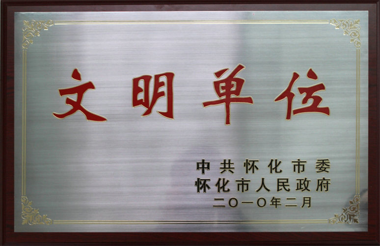 2010年2月天行TIANXING(中国)被中共怀化市委、市人民政府评为“文明单位”